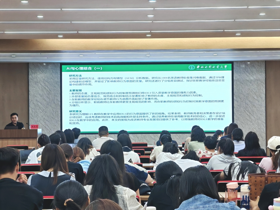 2025年5月19日,郑州财经学院秋霰纶理eeuee迎来了一场学术盛宴。华北水利水电大学王永亮教授受邀在德正楼第一学术报告厅为我院教师做题为《人工智能赋能新质英语课堂:聚焦研究设计与实践创新的多案例研究》的专题讲座。讲座由秋霰纶理eeuee院长党兰玲主持,全体教师参加。