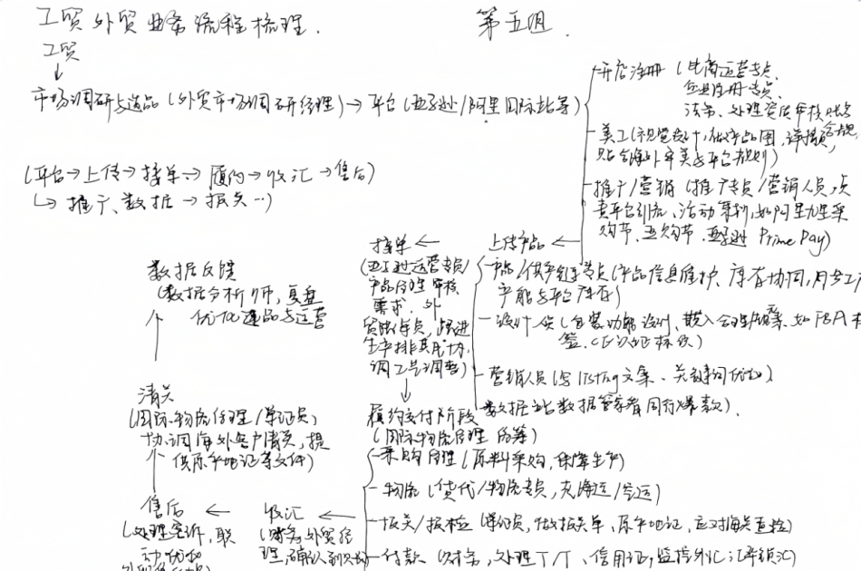 接下来的几天里,实习围绕每日设定的专项主题,采用“理论讲解+实操演练”的模式展开。开班首日,指导老师通过案例对比分析工贸一体企业与独立外贸企业的业务差异和优劣势,并要求学生利用熟知的招聘软件,搜索列举常见的外贸相关岗位。次日,指导老师以外贸相关岗位为线索,引导学生一起梳理传统外贸业务和跨境电商业务的基本流程、每阶段的对应岗位和工作内容。